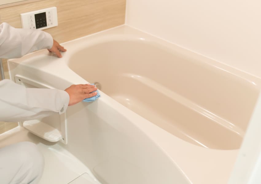 (シリコン)パラディの水まわりコーティングでは、シリコンを主剤としたコーティング剤を塗布し、浴室やキッチン、洗面所、脱衣所といった水廻りの設備を保護します。新築の時に一度施工すれば長期間細かい汚れや傷を防ぐことができ、簡単なお掃除できれいな状態をキープ。お住まいの管理負担を軽減します。