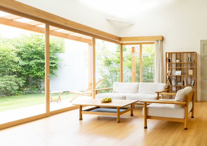 窓のたくさんある明るい部屋は気持ちのよいものですが、その分紫外線や汚れが気になります。その時に活躍するのがウインドウフィルムです。 当社で使用しているフィルムの紫外線のカット率は、99.5%以上で業界ナンバーワン。可視光線透過率は98.2%なので、紫外線を防ぎながらも室内が暗くなることはありません。フィルムを貼っておけば、地震などで万が一窓が割れてもガラスが飛び散らず安心。